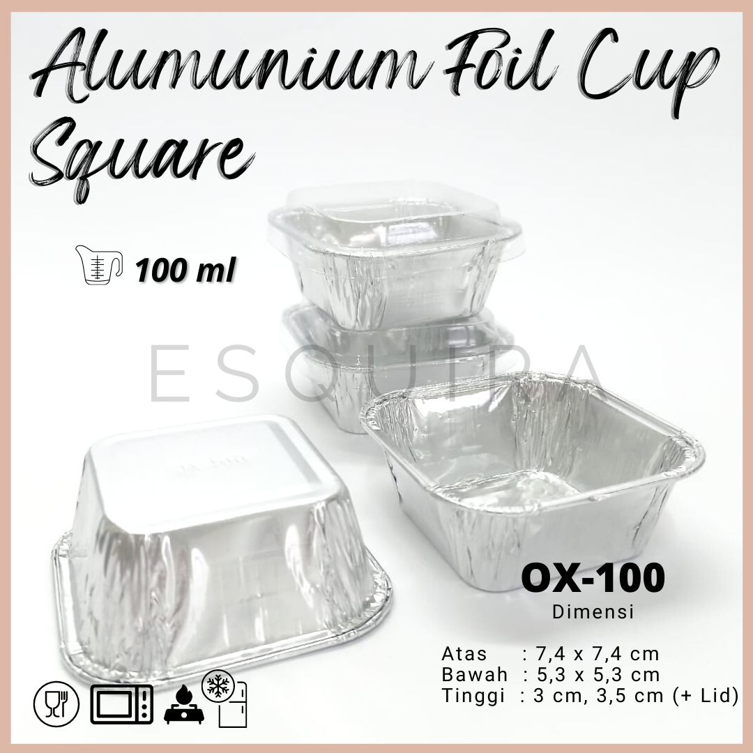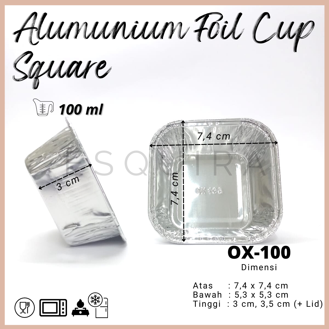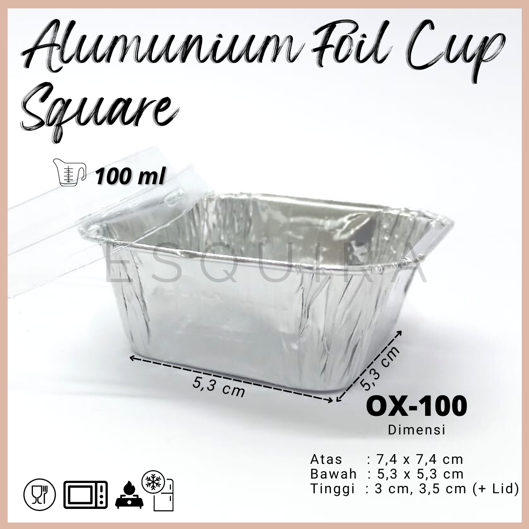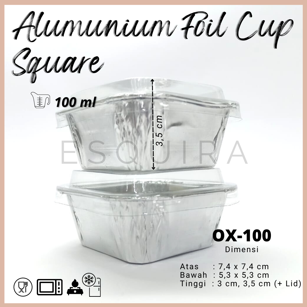 Aluminium Foil Cup Square 100 ML / Silver + Lid / OX-100