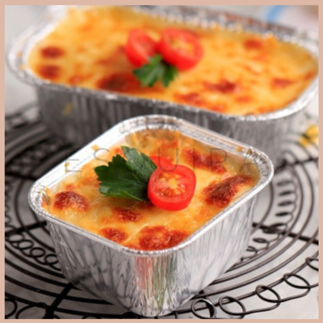 Bahan aluminium foil bagus Eco friendly, tahan panas, tahan dingin Cocok untuk menu mentai, makaroni skotel dll