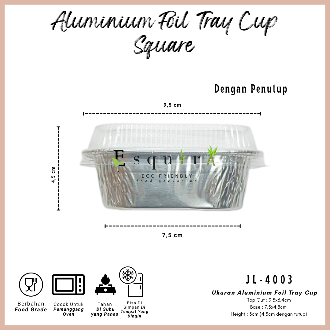 Keunggulan: + Bahan tebal dan tutup rapat. + Food Grade + Oven safe Bahan aluminium foil premium Eco friendly, tahan panas, tahan dingin Cocok untuk menu Appetizer.
