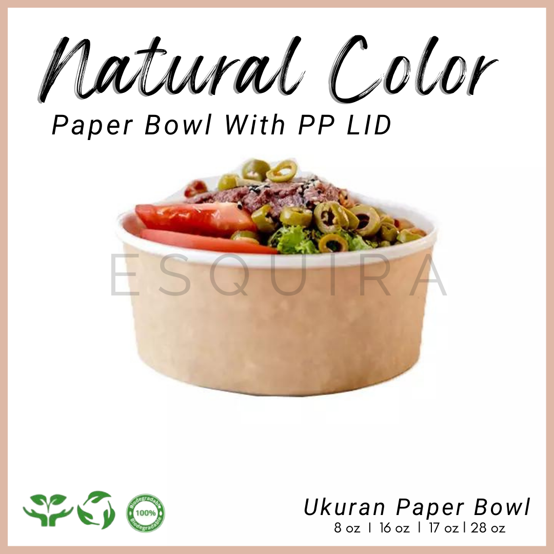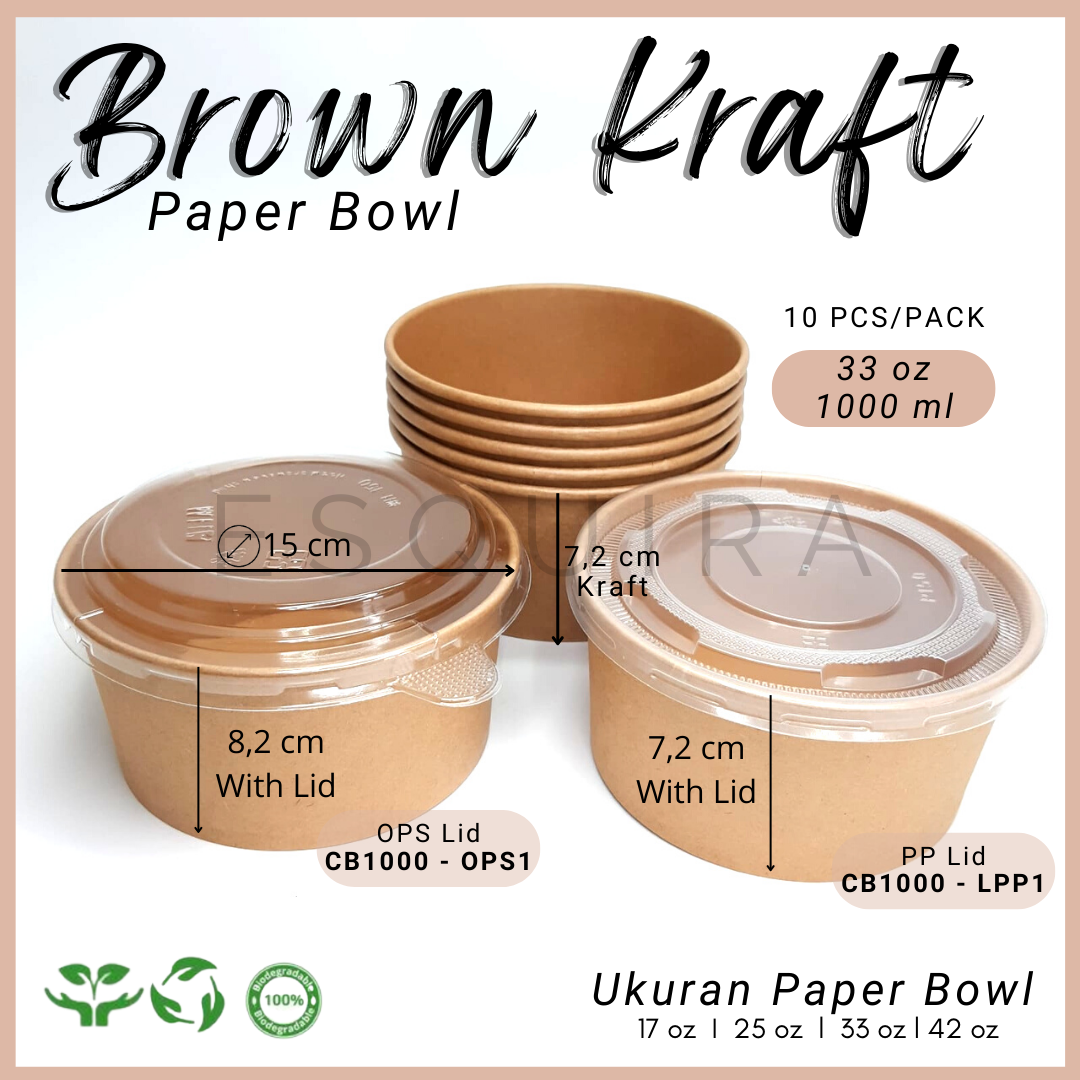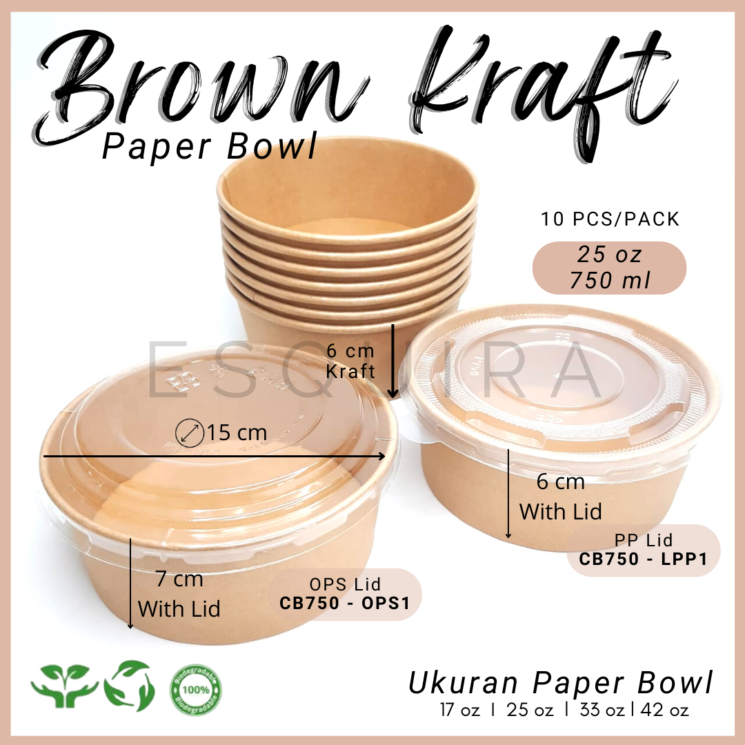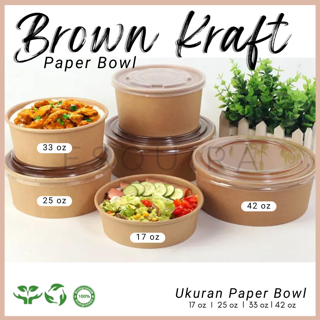 Bahan Kraft untuk bowl Bahan Mika plastik untuk tutup / Lid Eco friendly aman untuk makanan panas maupun dingin Kemasan sekali pakai Bowl anti air Tutup sangat rapat tidak gampang tumpah