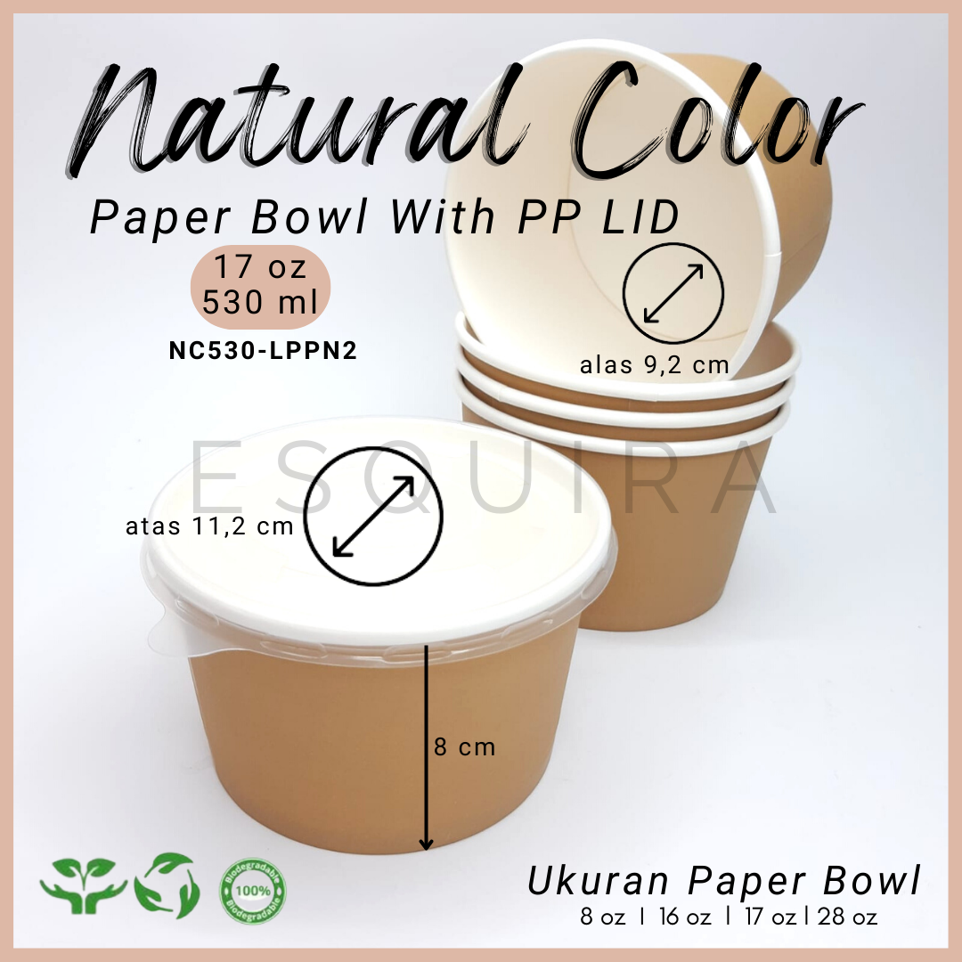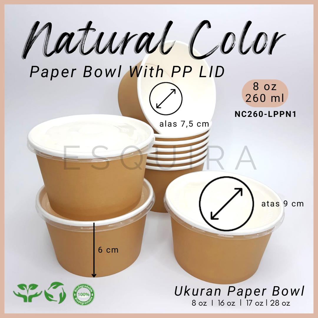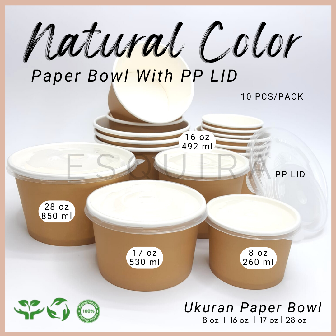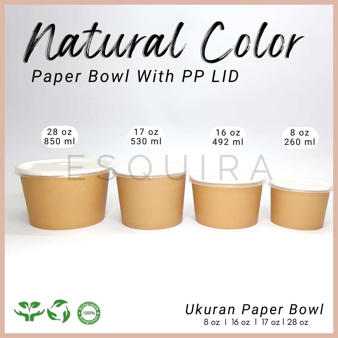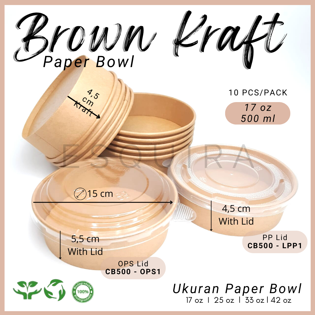 Bahan Kraft untuk bowl Bahan Mika plastik untuk tutup / Lid Eco friendly aman untuk makanan panas maupun dingin Kemasan sekali pakai Bowl anti air Tutup sangat rapat tidak gampang tumpah