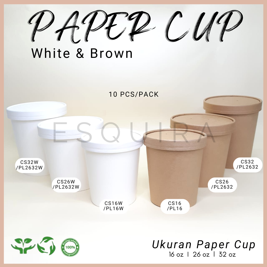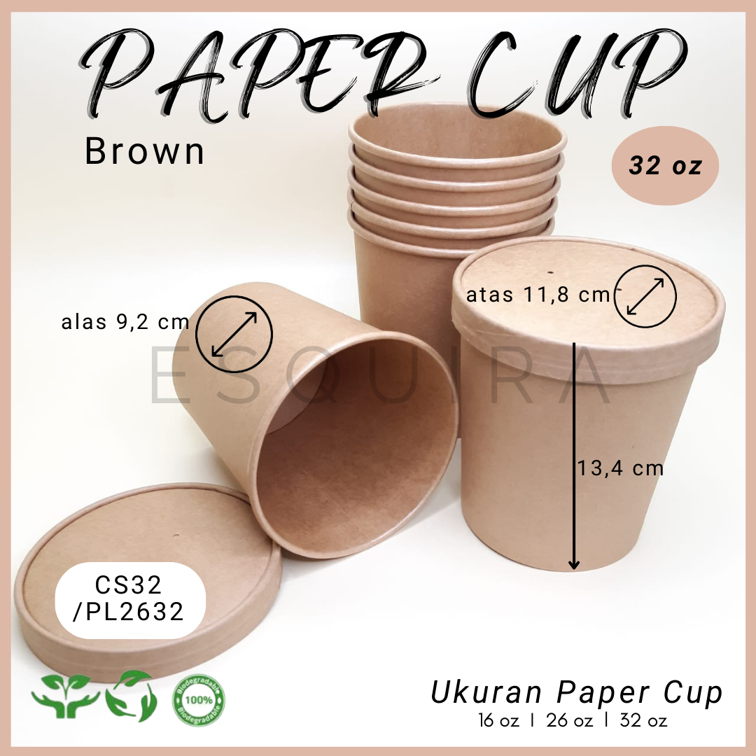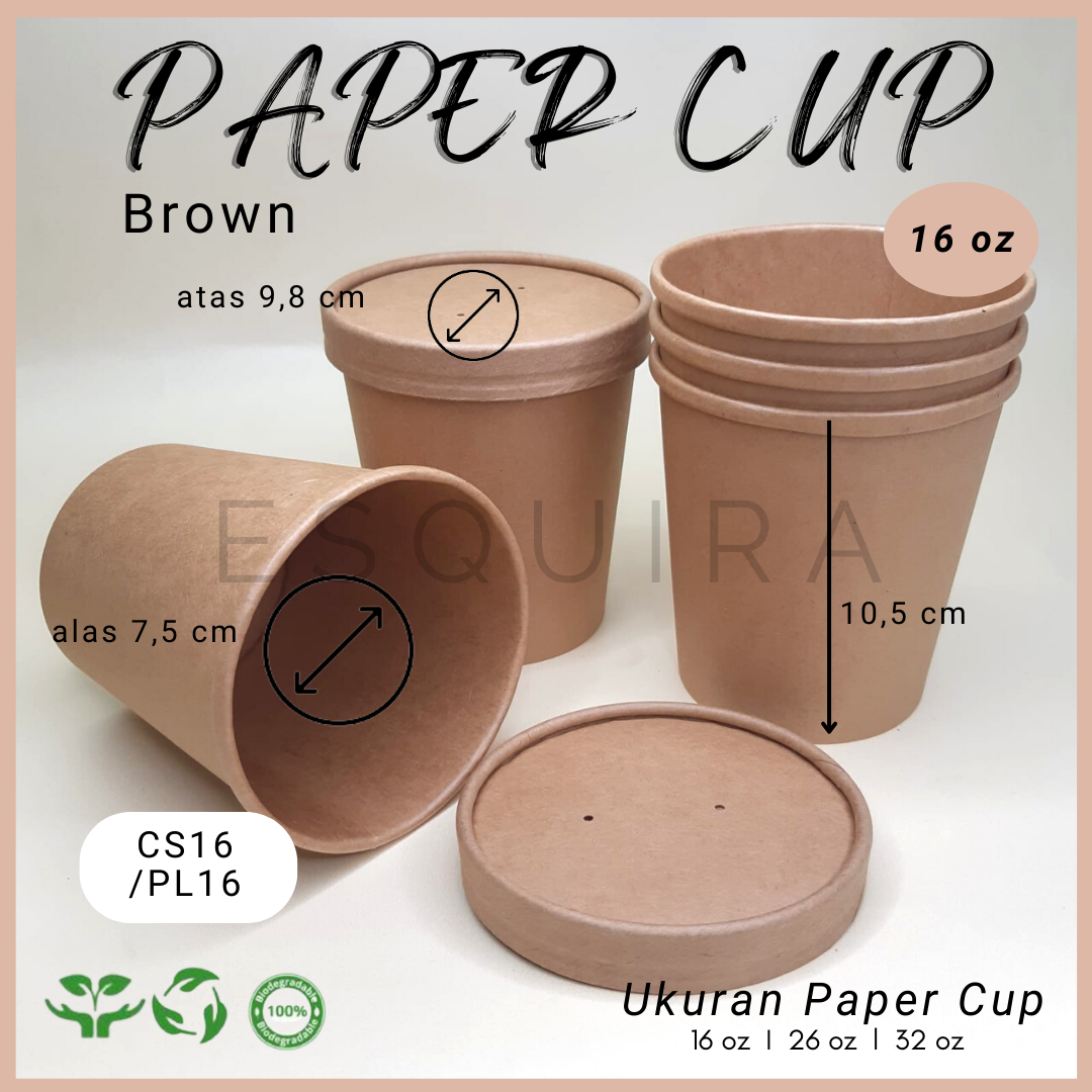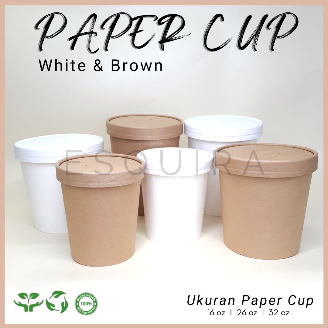 Kraft Paper Cup + Tutup Kraft Warna Brown Kraft dan White