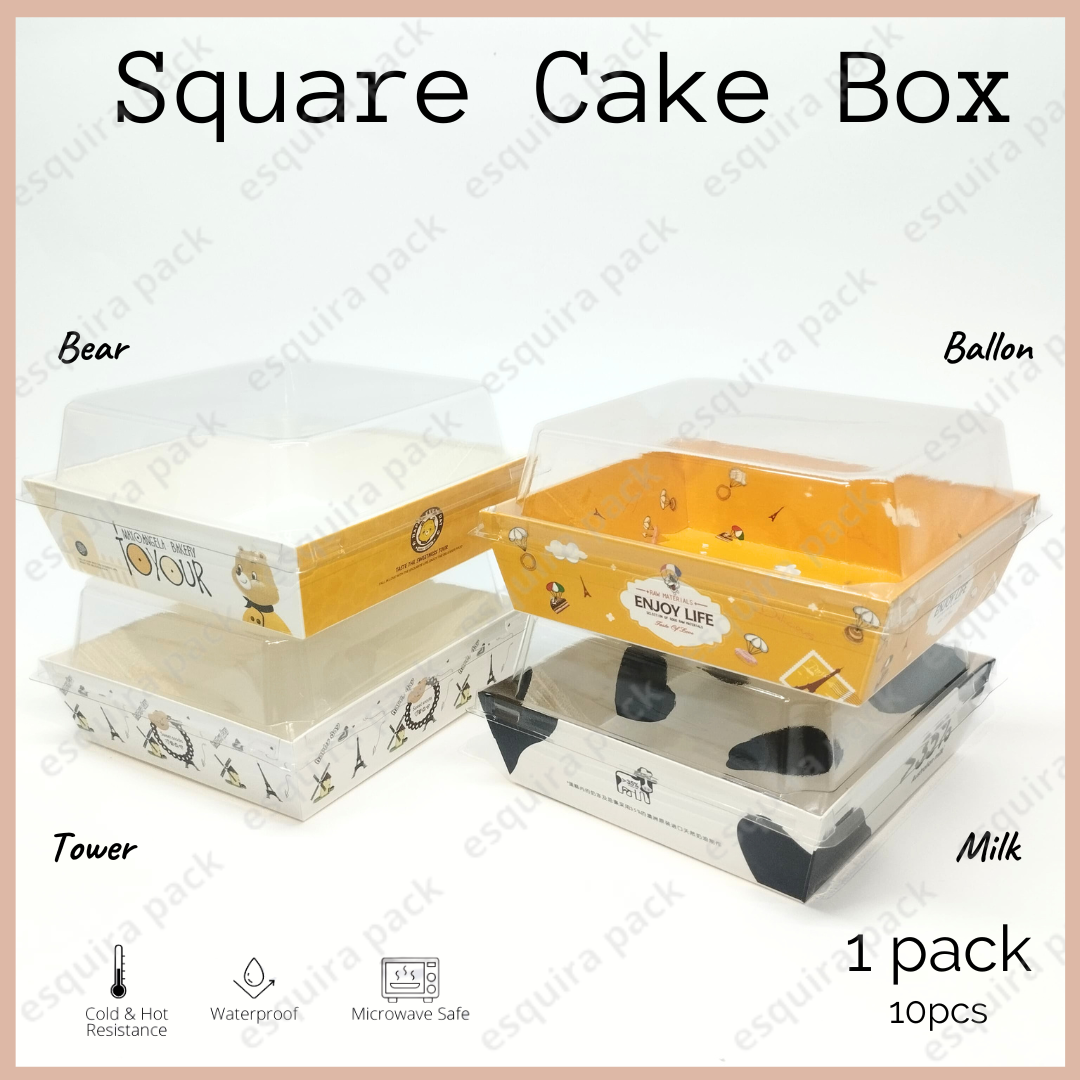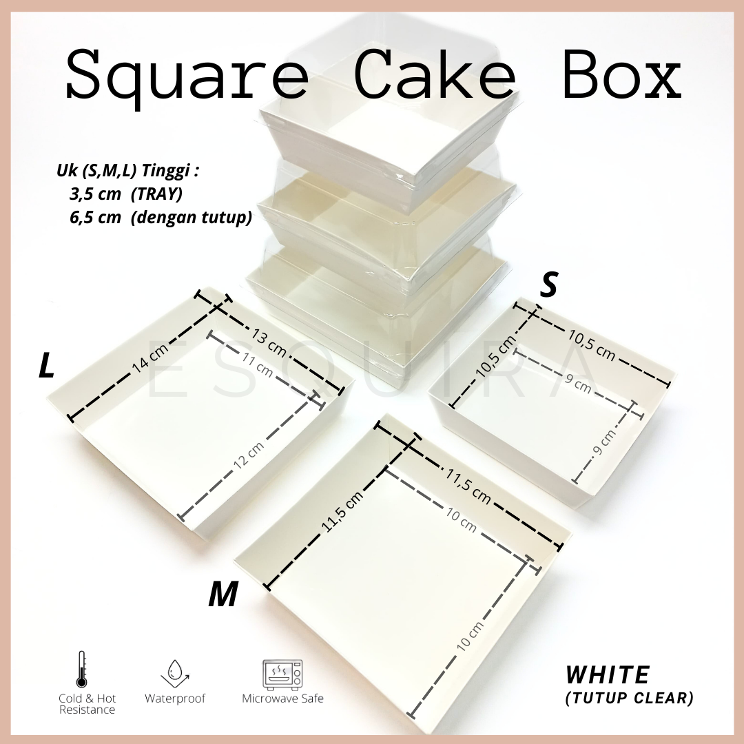 Topout = 10,5 cm x 10,5 cm Base = 9 cm x 9cm Height = 3,5 cm (tray only), 6,5 (tray + lid)