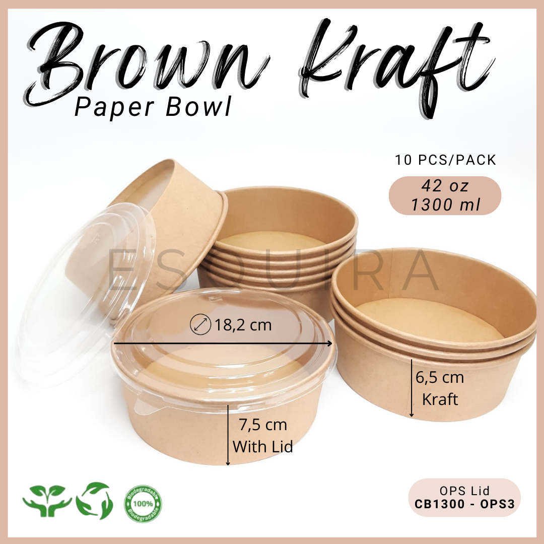 Brown Kraft Paper Bowl 42oz (1300 ml) + OPS Lid