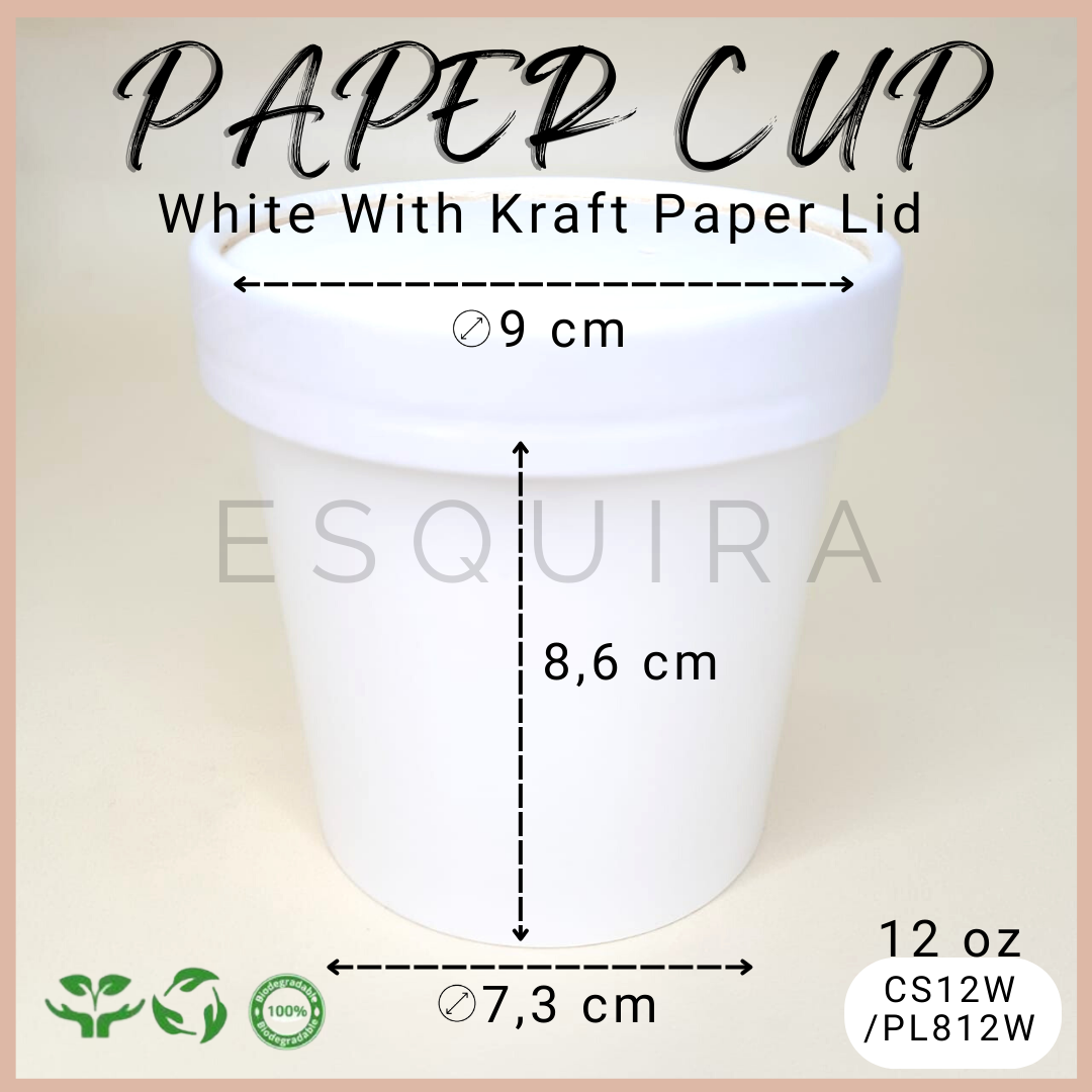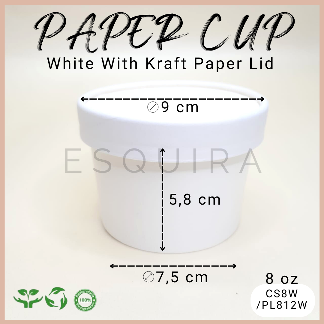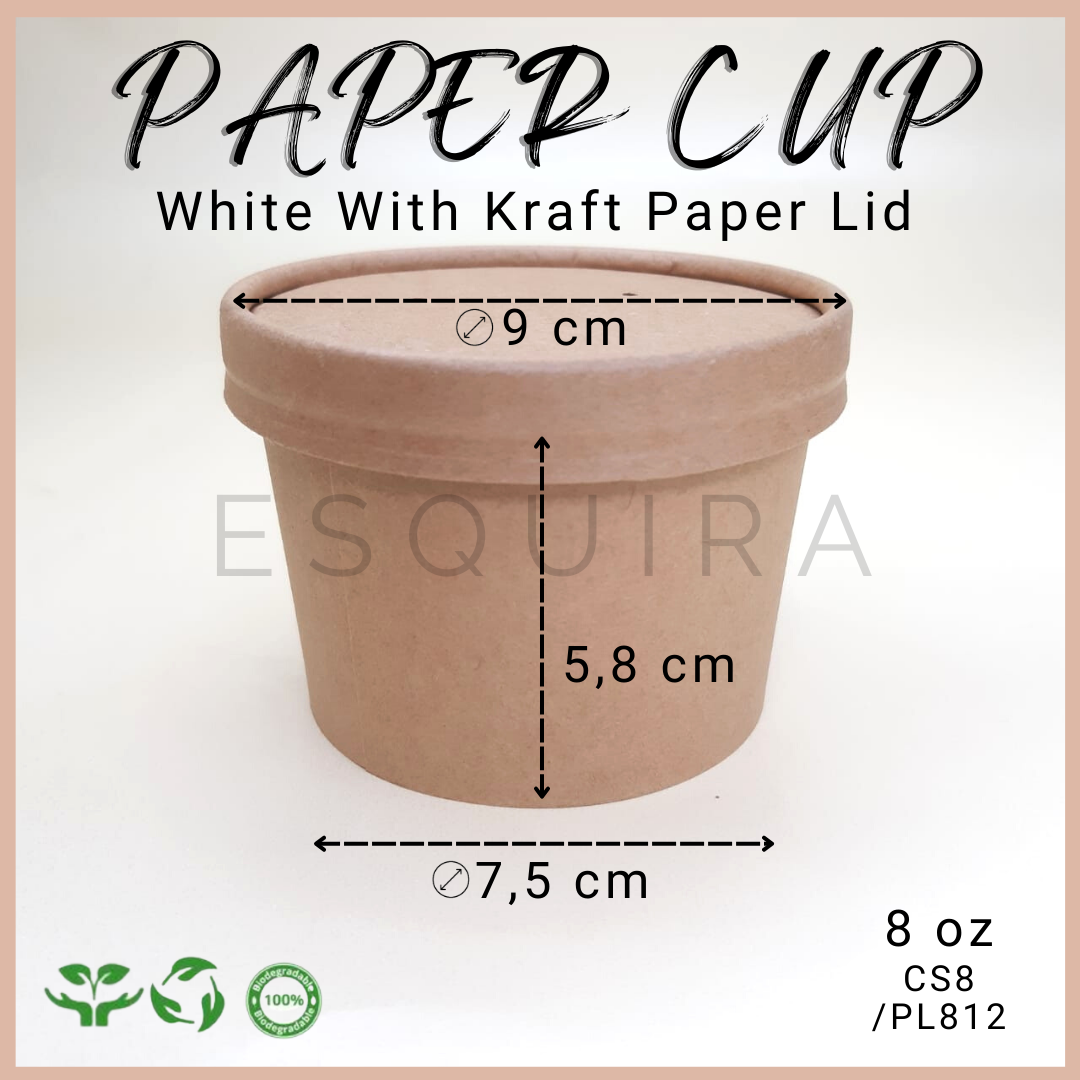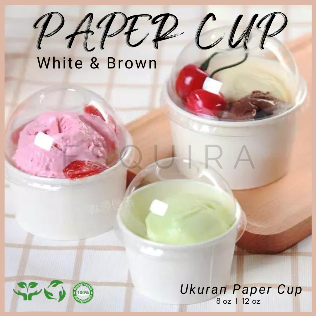 Kraft Paper Cup / Ice Cream Cup + Dome Plastic Lid / Kraft Lid