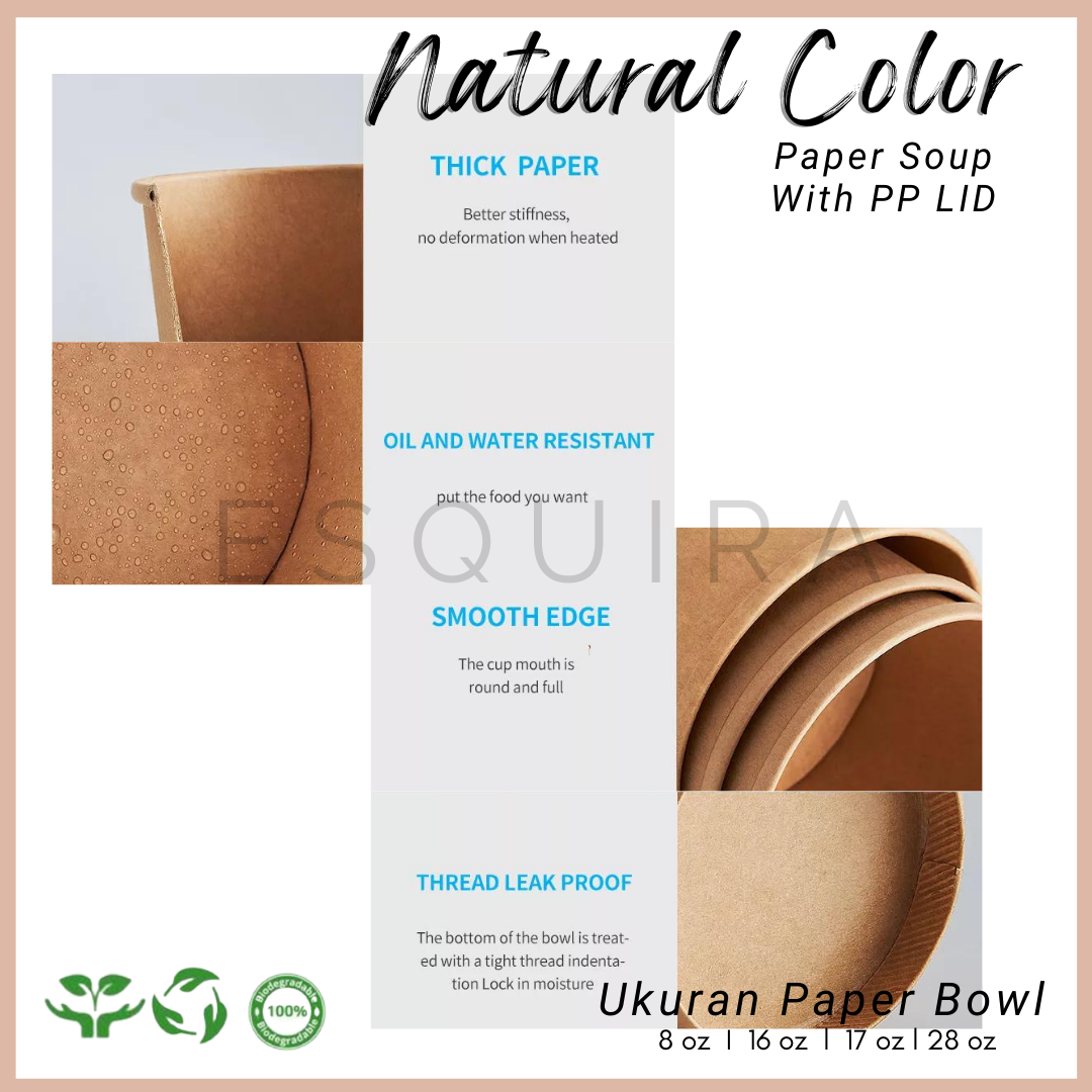 Bahan Paper Kraft Eco friendly aman untuk makanan panas, Biodegradable and Compostable (Dapat teruai) Kemasan sekali pakai Tutup sangat rapat jadi tidak tumpah