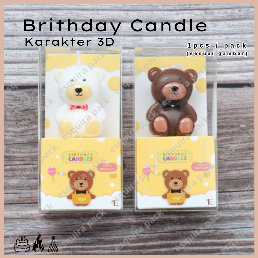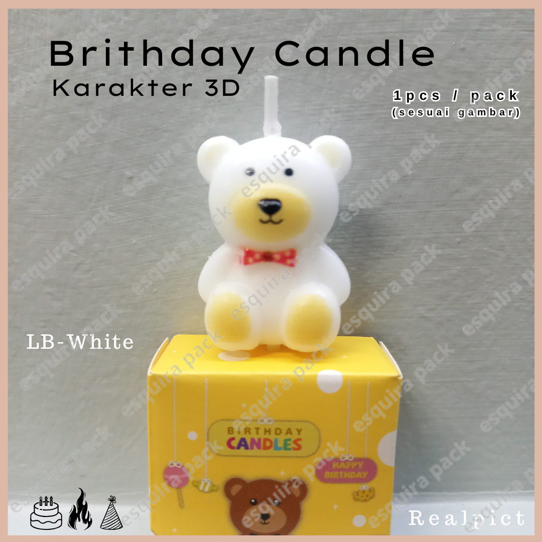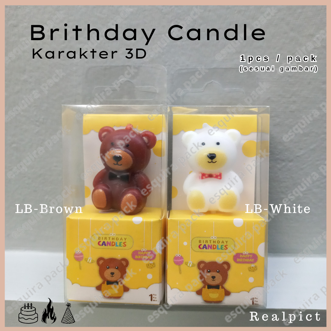Bear Candle (LB white / brown) Panjang Lilin + tancapan : ±7 cm (1pack= 1pcs)