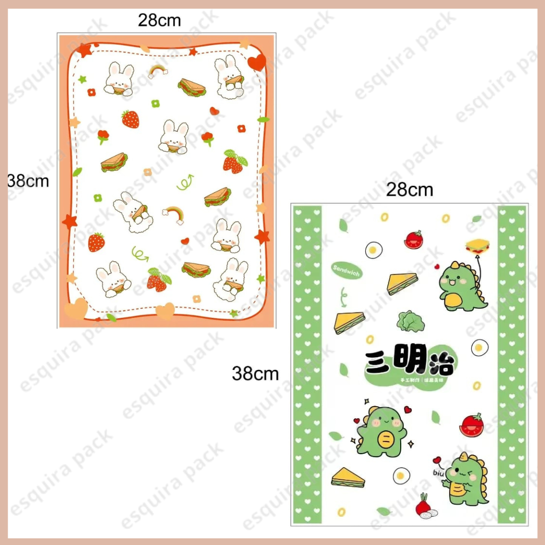 Ukuran : 30 Cm x 30 Cm Tersedia 4 motif Cocok untuk bungkus nasi, roti, cake, burger, kebab, Alas bekal dan Alas Bento Cake dll