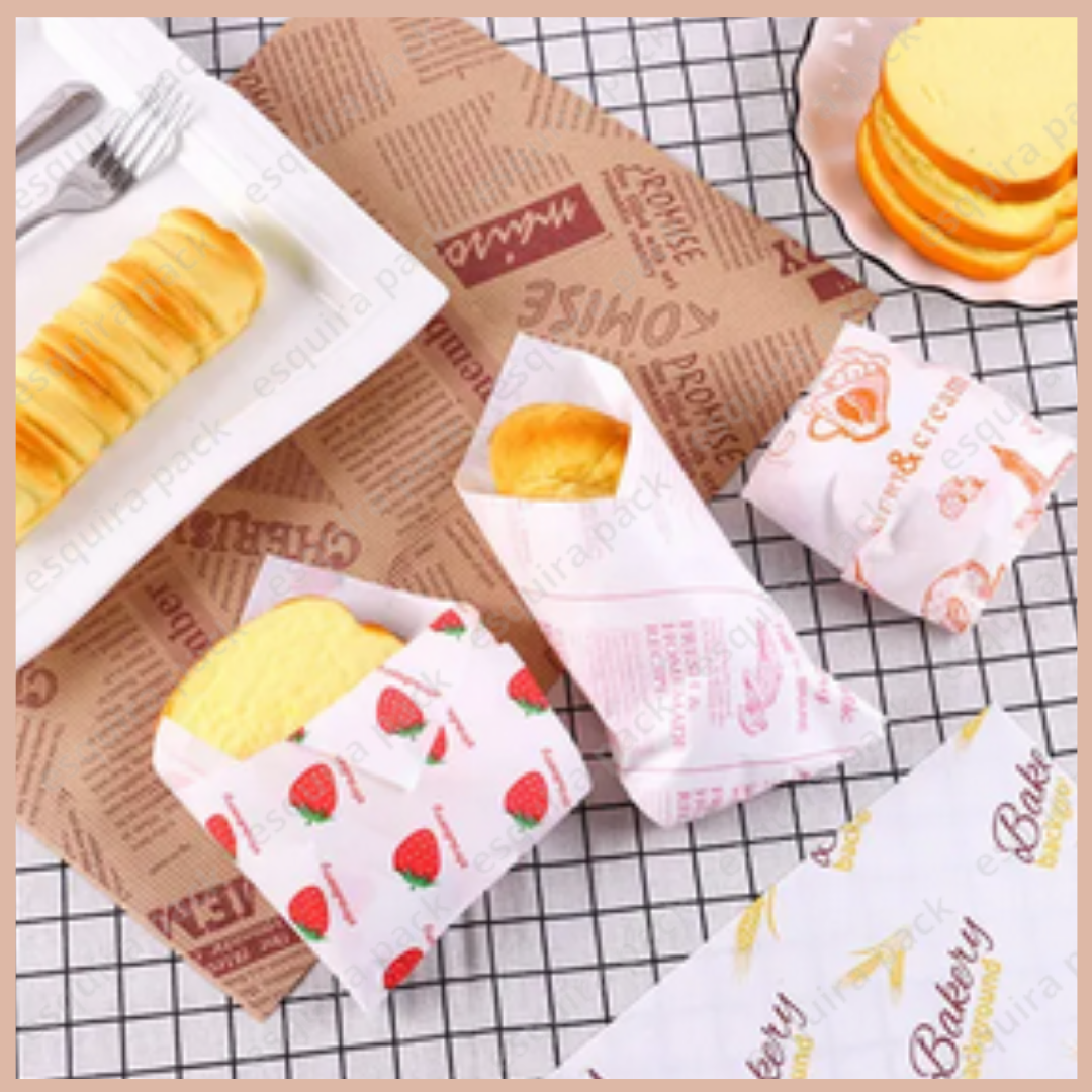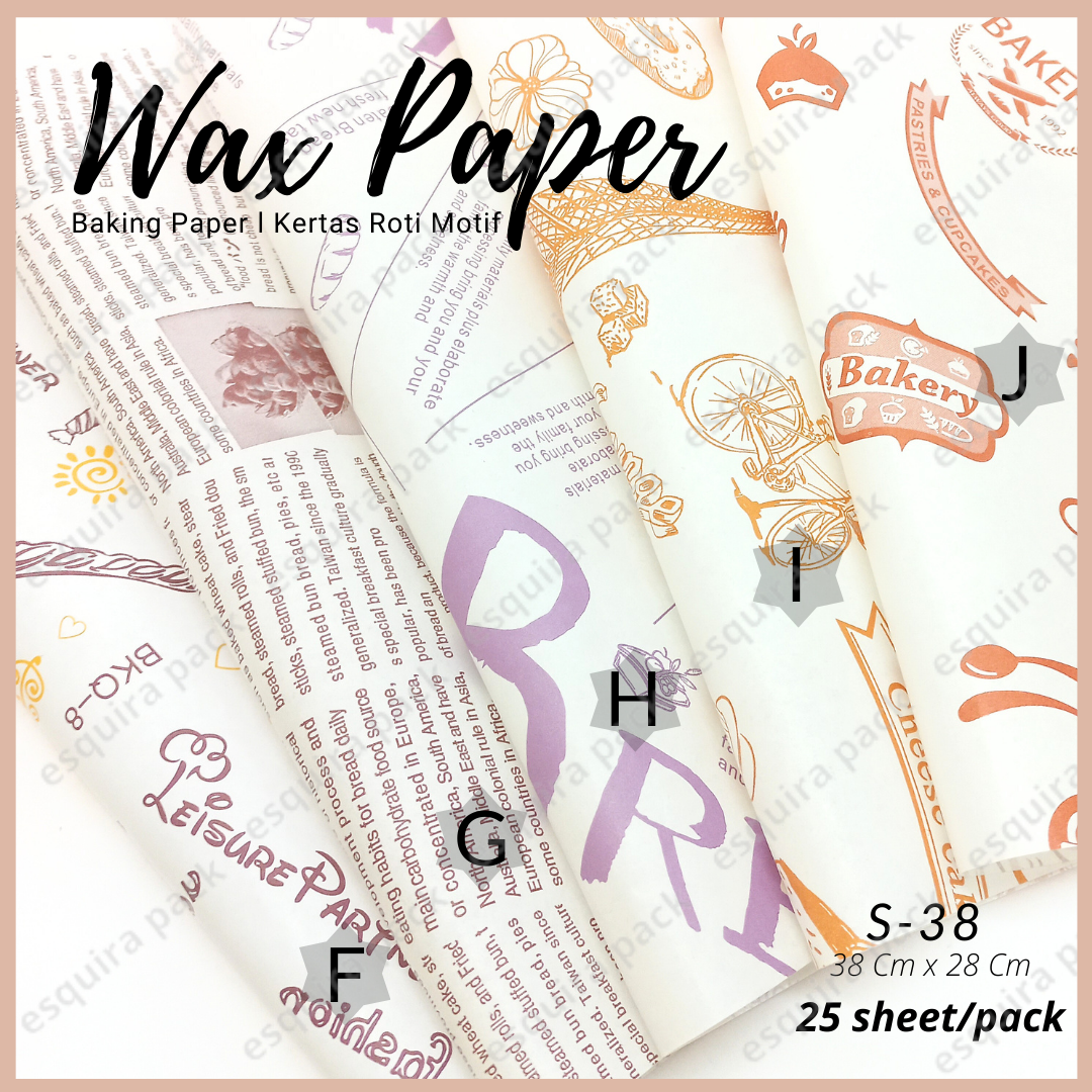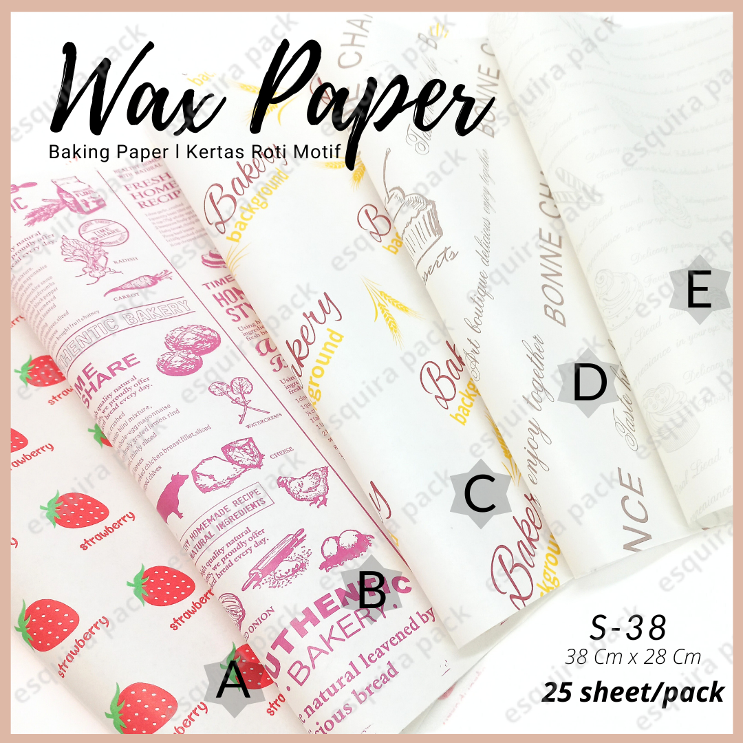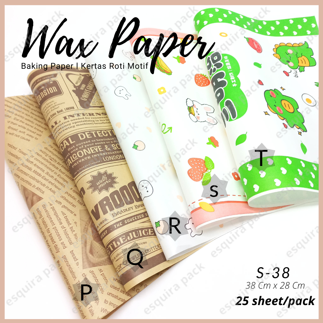 Ukuran : 38 Cm x 28 Cm Tersedia 24 motif & mix motif (semua motif) Cocok untuk bungkus nasi, roti, cake, burger, kebab dll