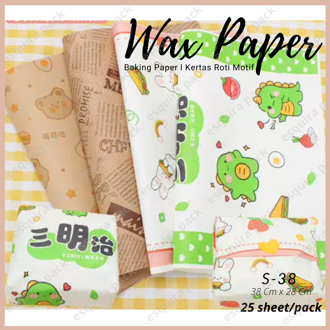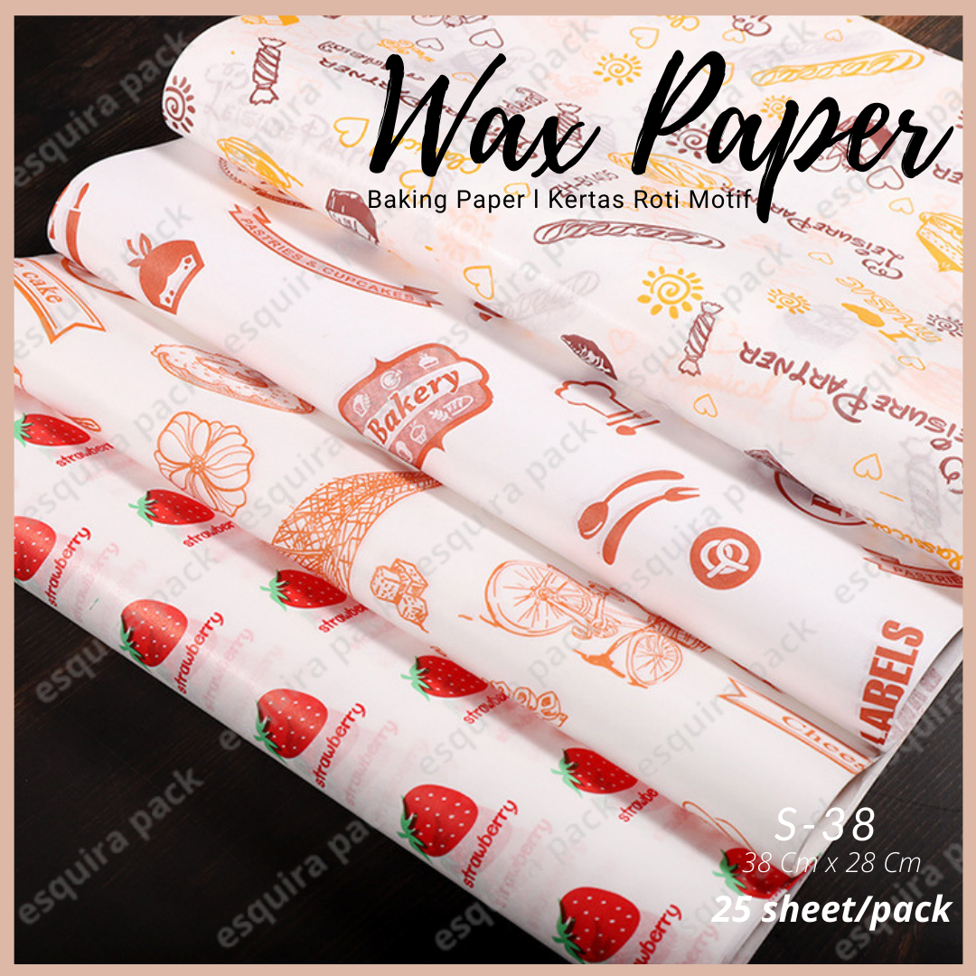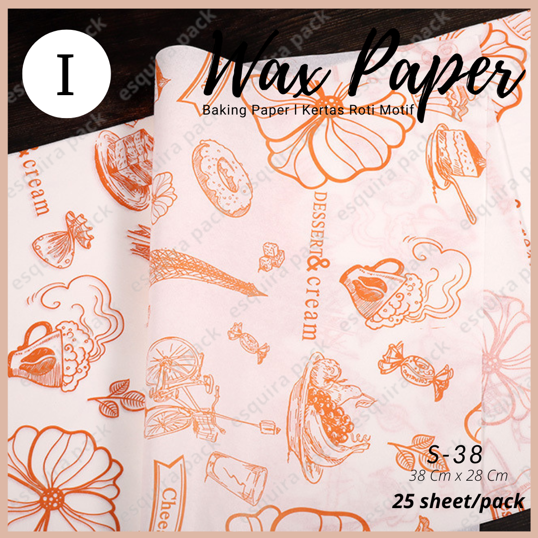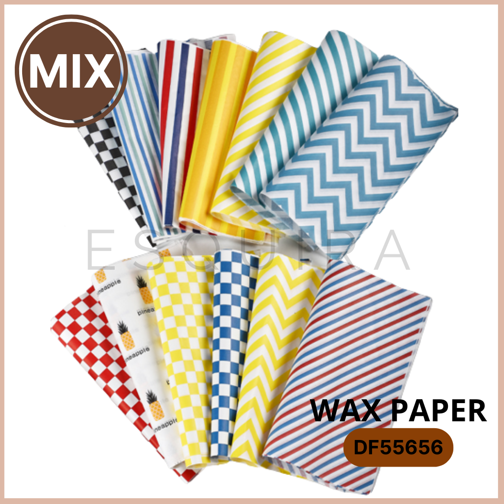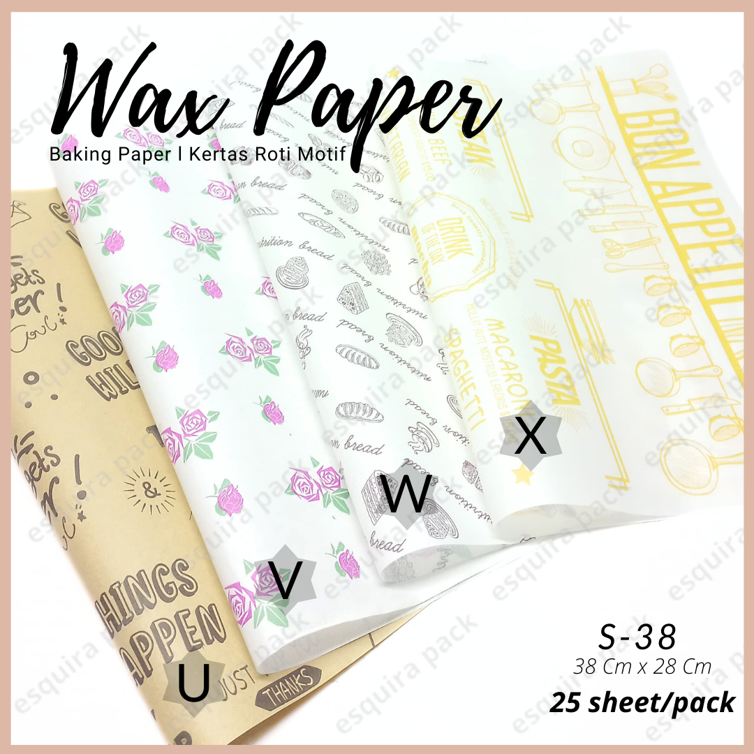 Ukuran : 38 Cm x 28 Cm Tersedia 24 motif & mix motif (semua motif) Cocok untuk bungkus nasi, roti, cake, burger, kebab dll