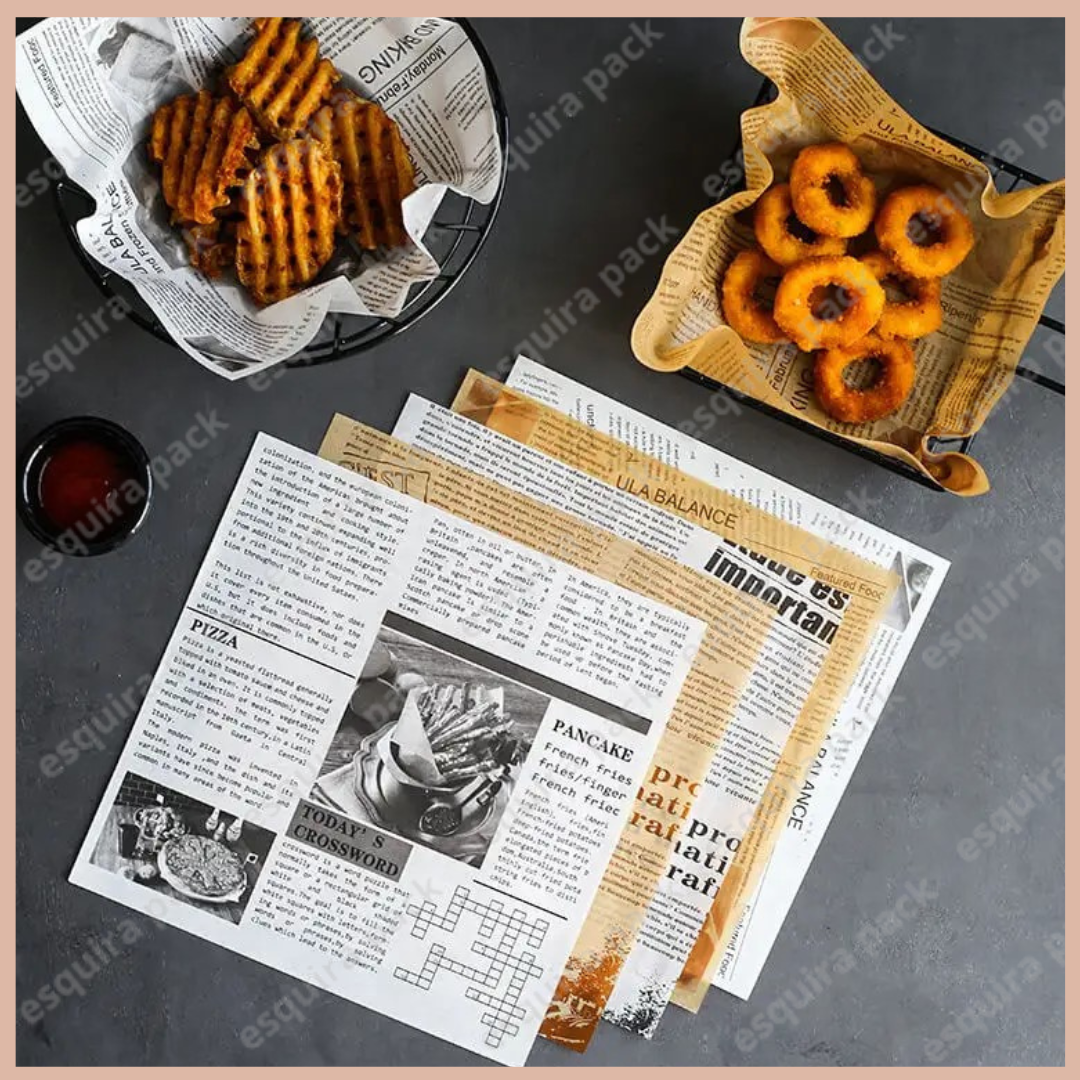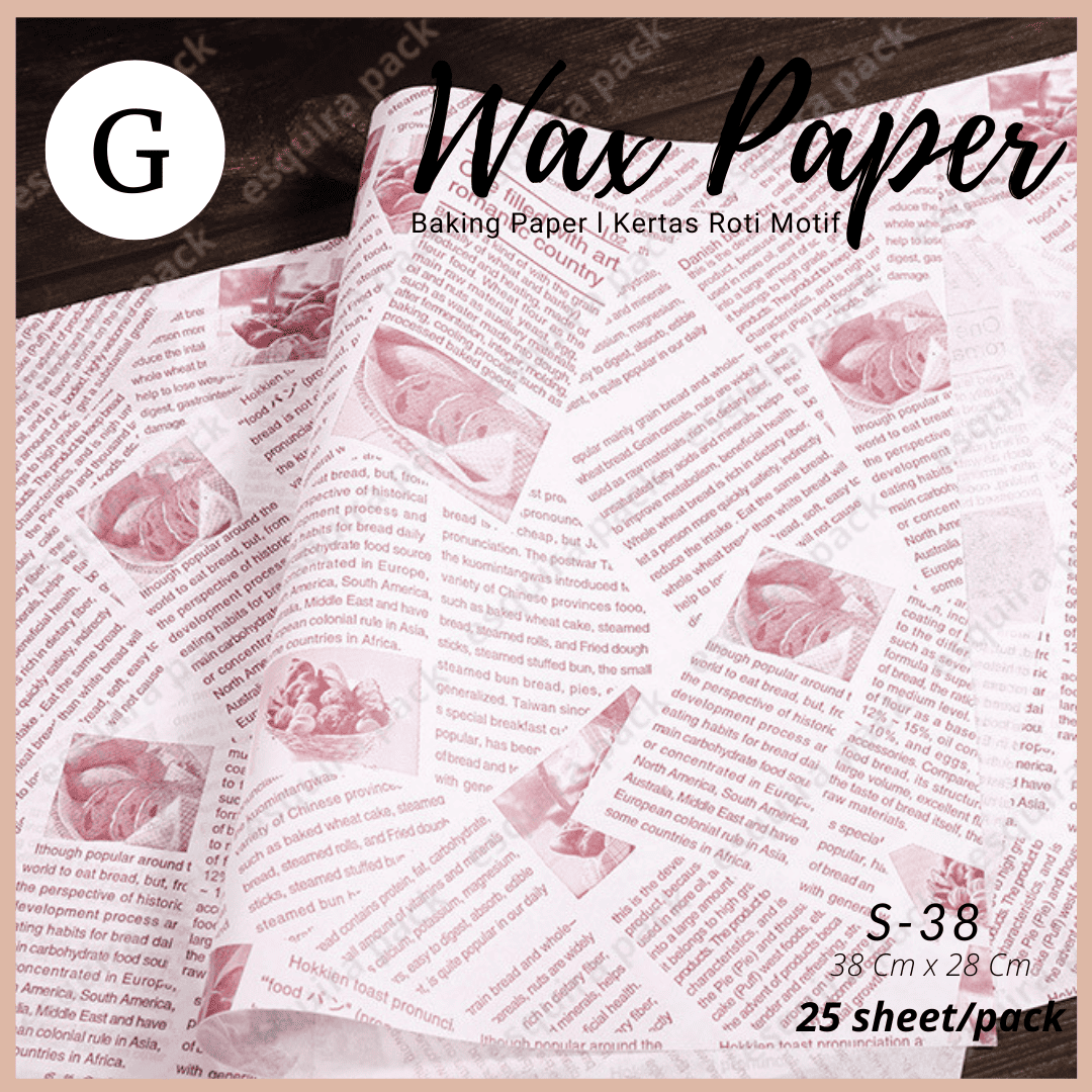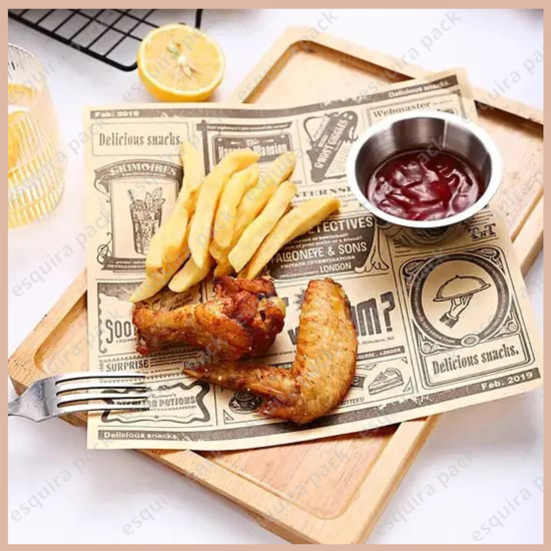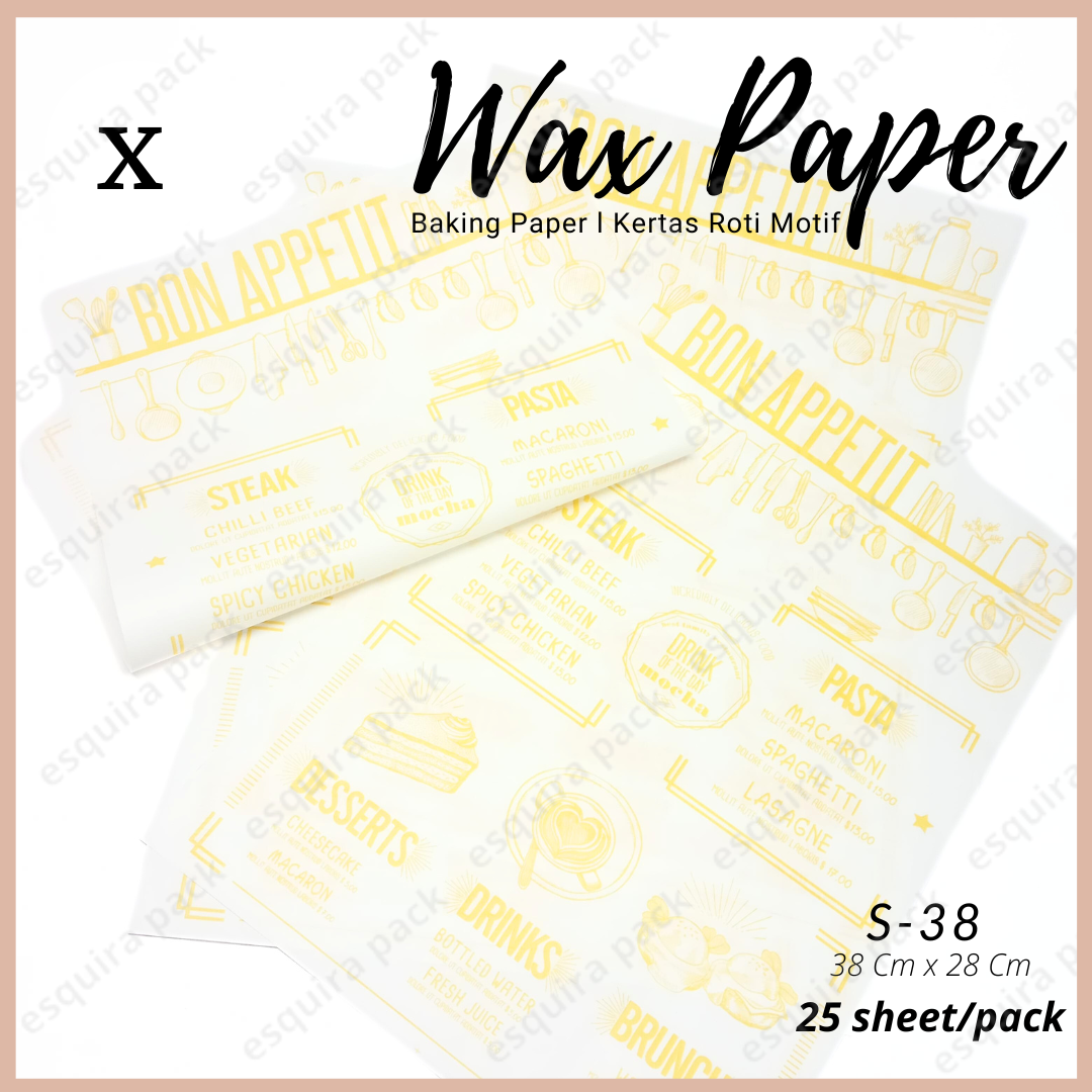 Ukuran : 38 Cm x 28 Cm Tersedia 24 motif & mix motif (semua motif) Cocok untuk bungkus nasi, roti, cake, burger, kebab dll