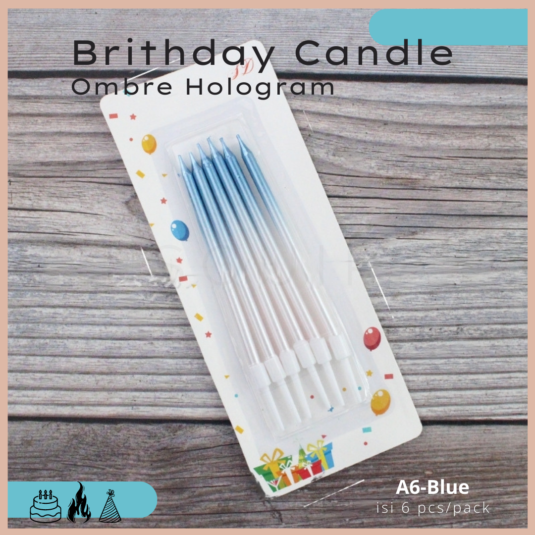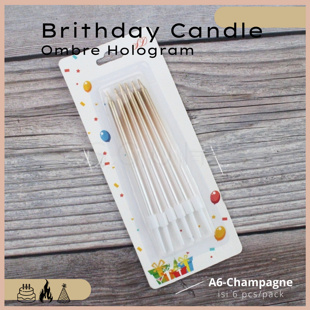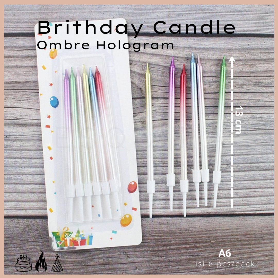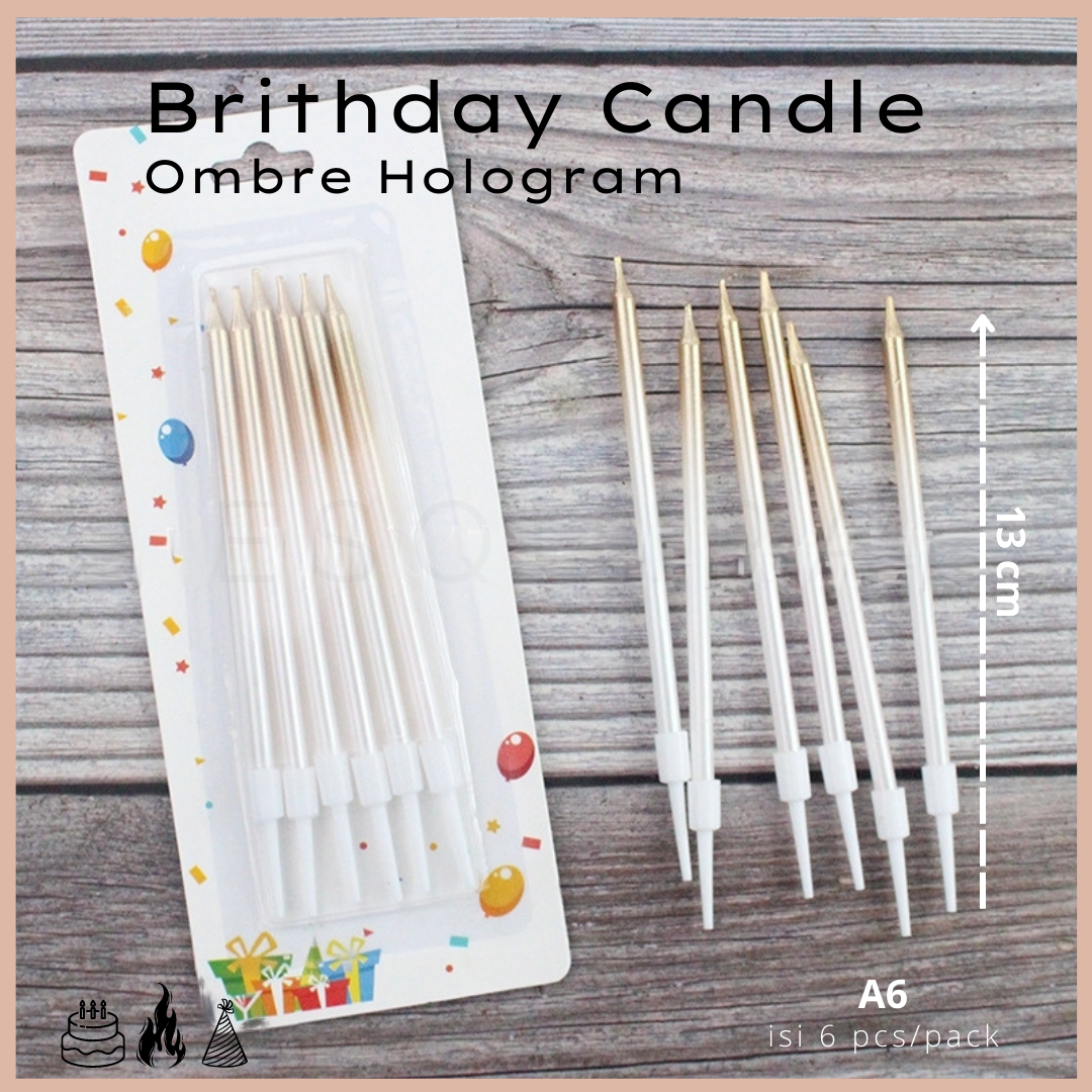 Ombre Hologram Candle / Lilin Ulang Tahun / 6 pcs A6
