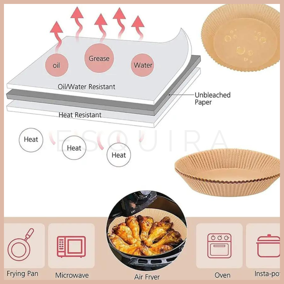Kertas Alas Air Fryer Baking Paper Penyerap Minyak Anti Lengket Dapur Fungsi : Penggorengan tidak lagi kotor dan berantakan setelah digoreng dengan Kertas Alas Air Fryer Sekali Pakai. Buang Kertas Alas Air Fryer setelah digunakan, tidak perlu membersihkan penggorengan. Kertas Alas Air Fryer cukup tebal untuk menahan waktu memanggang! Tentunya Ramah Lingkungan