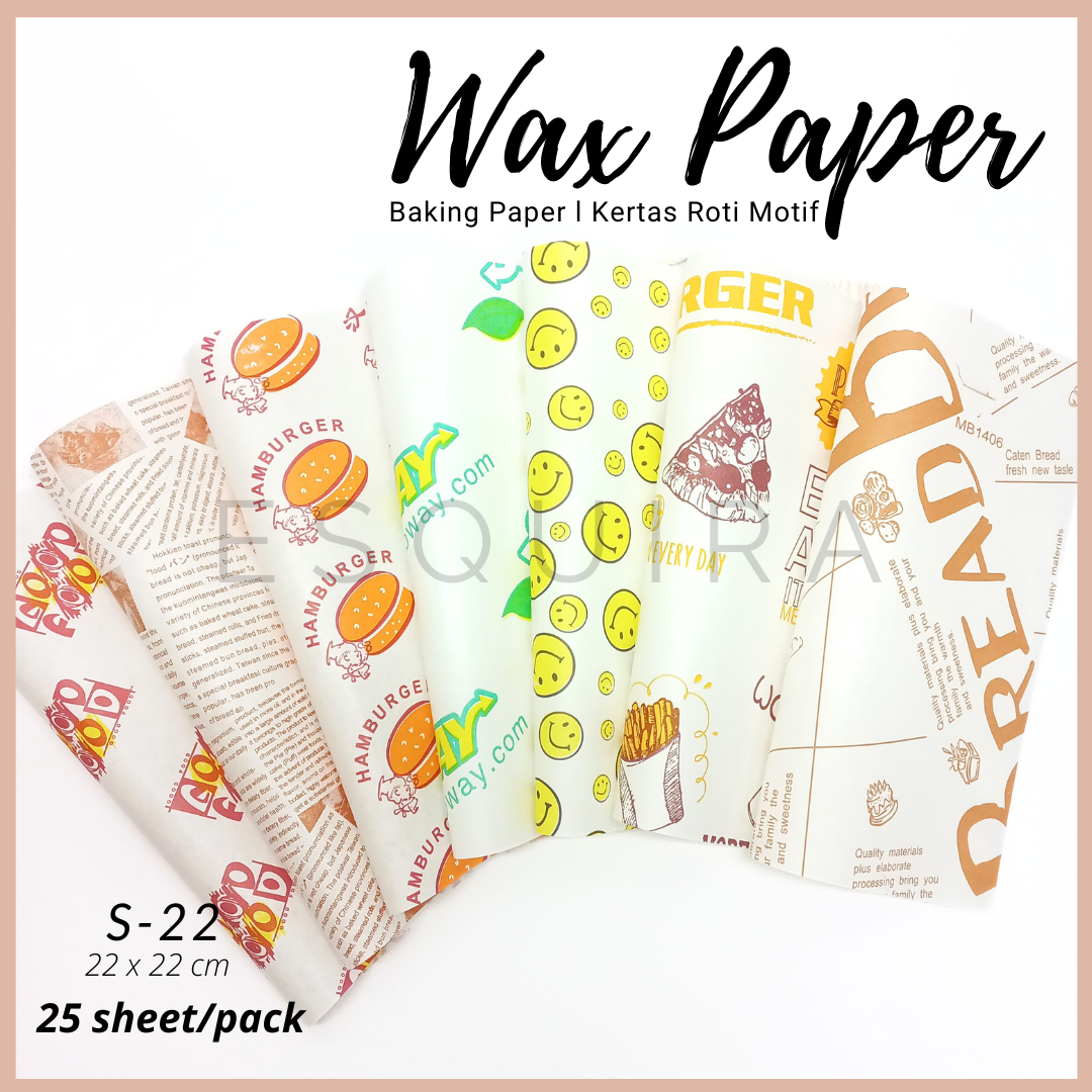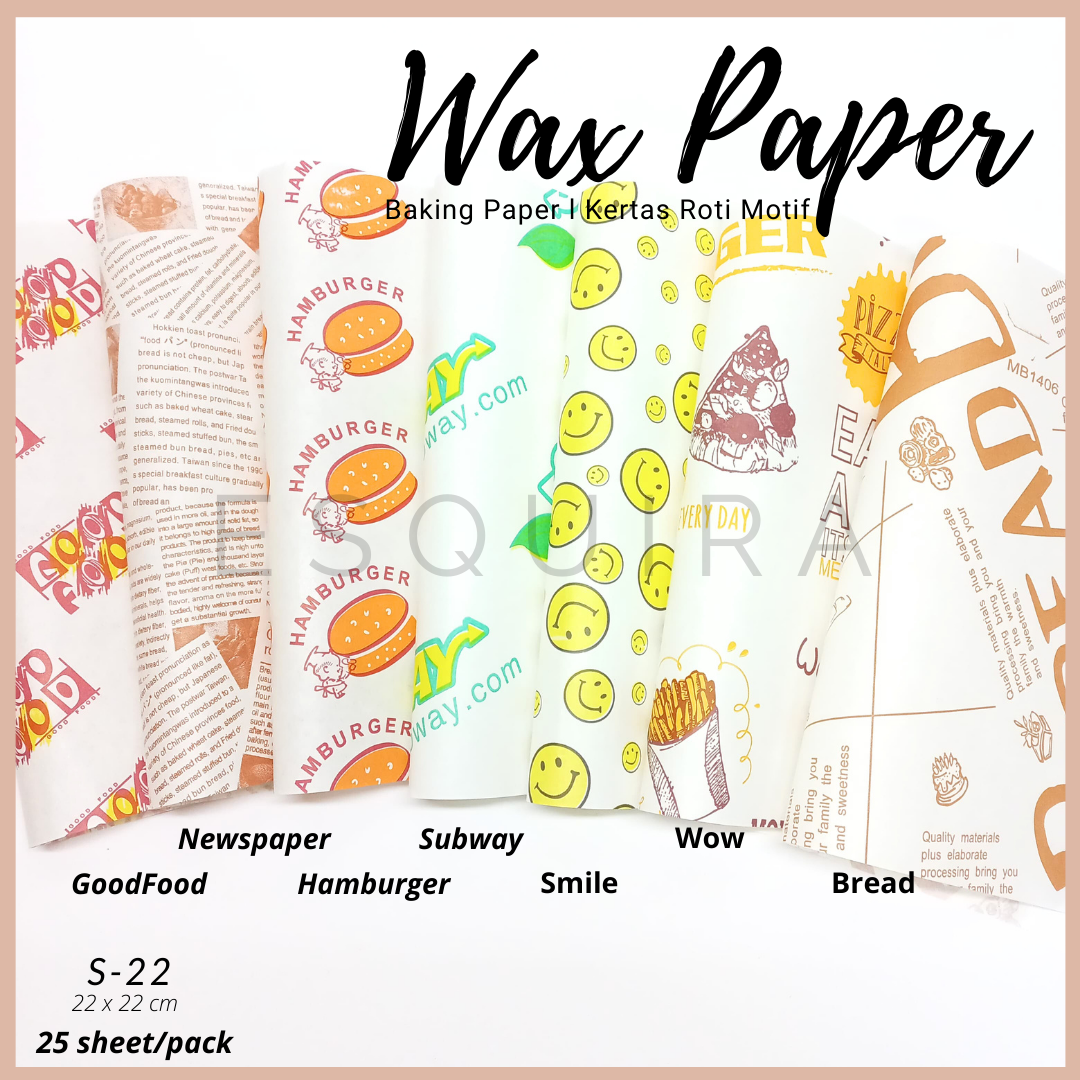 Ukuran : 22 Cm x 22 Cm Tersedia 13 motif Cocok untuk bungkus nasi, roti, cake, burger, kebab dll