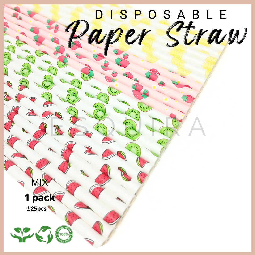 Ukuran : 200 mm Diameter : 6 mm Tersedia 2 Mix Motif sesuai gambar etalase. – MIX Straw – MIX FRUIT Straw
