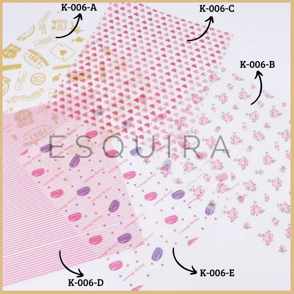 Ukuran : 38 Cm x 28 Cm Tersedia 6 motif & mix motif (semua motif) Cocok untuk bungkus nasi, roti, cake, burger, kebab dll